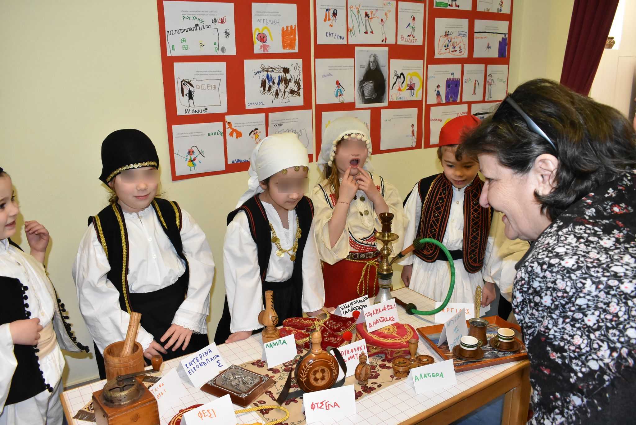 Πριν αρχίσει η γιορτή είχαν ετοιμάσει μια έκθεση με παλαιά αντικείμενα και σε θέση ξεναγού υποδέχθηκαν τους καλεσμένους τους.