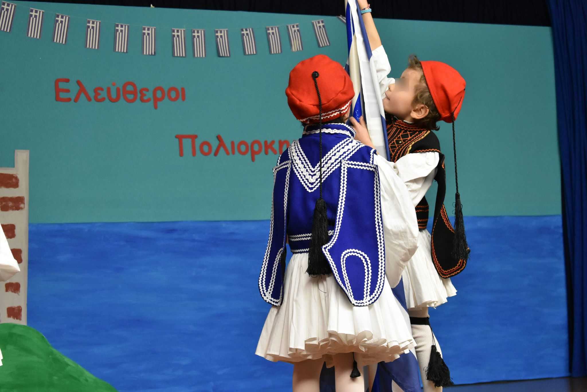 Τα παιδιά ετοίμασαν και παρουσίασαν στους γονείς τους μια γιορτή αφιερωμένη στους «Ελεύθερους Πολιορκημένους » του Μεσολογγίου.