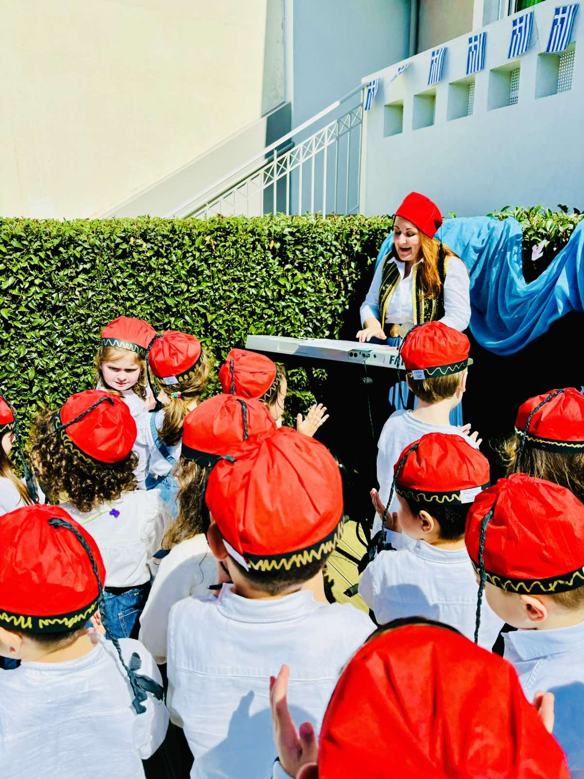 Τα μικρότερα παιδιά γιόρτασαν με τραγούδια και χορευτικά με την συνοδεία της δασκάλας της μουσικοκινητικής κας Θεώνης «Στιγμές από την Επανάστασης»