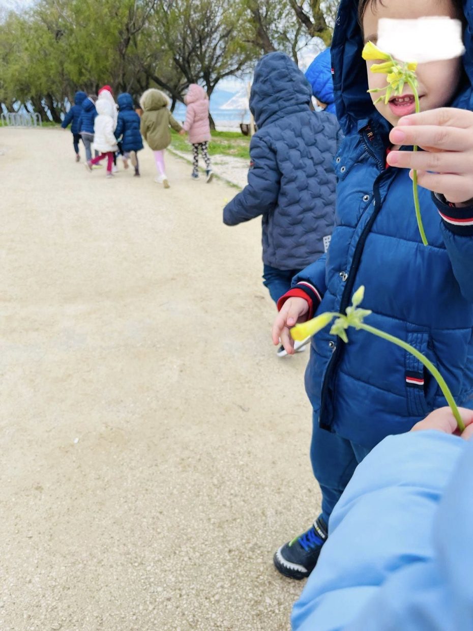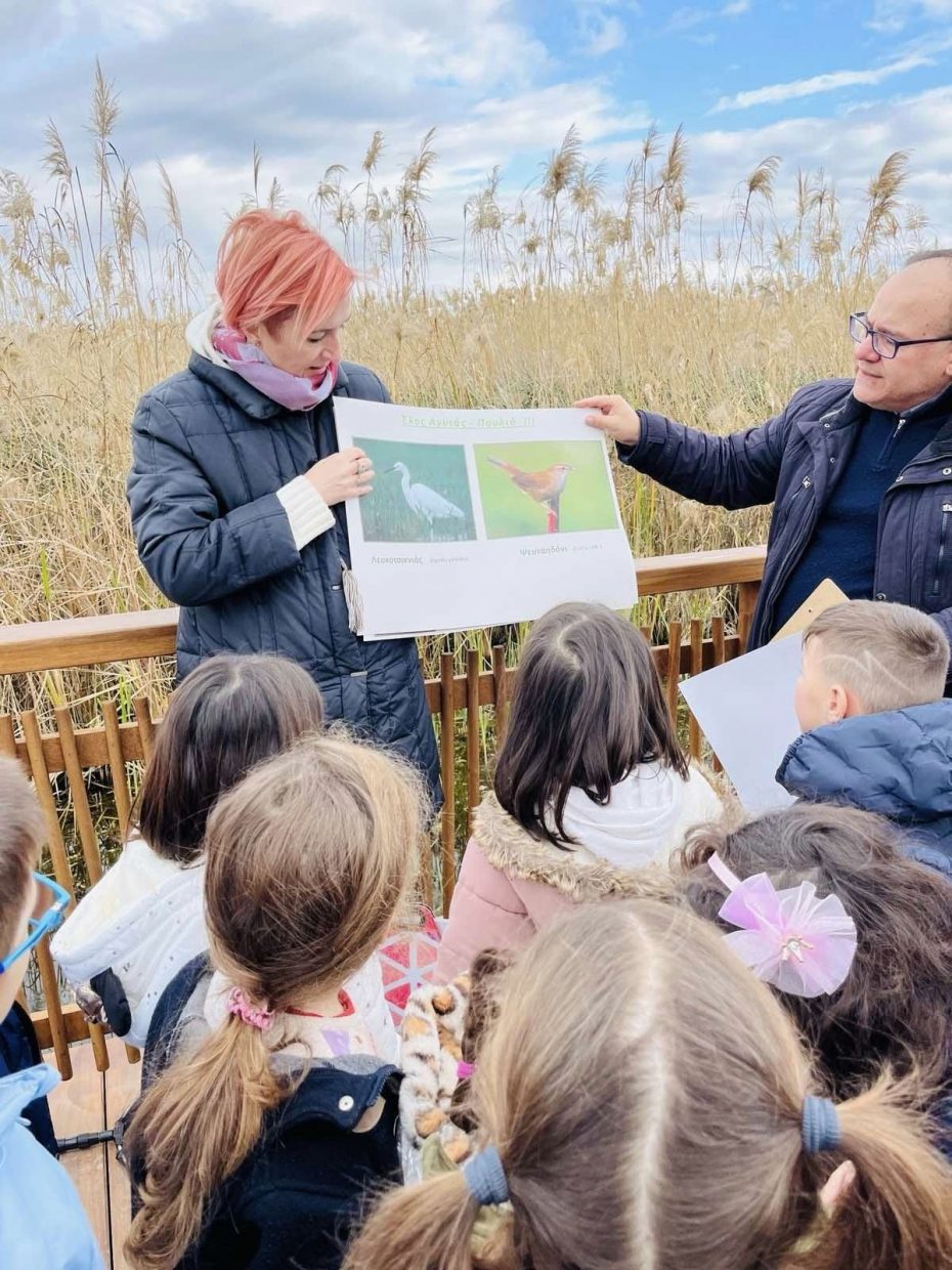 Τα παιδιά του Νηπιαγωγείου είχαν την μοναδική ευκαιρία να γνωρίσουν τα μυστικά του βιότοπου από τον περιβαντολογο κ. Κωνσταντακόπουλο ο οποίος τα βοήθησε να δουν το χώρο από μια ερευνητική ματιά και να αναγνωρισουν την χλωρίδα και την πανίδα του χώρου.