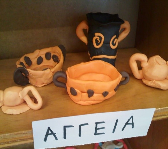 Προτείνω να ξεκινήσουμε φτιάχνοντας….ΑΓΓΕΙΑ!!!! Τα αγγεία του μουσείου είναι φτιαγμένα από πηλό, τα έχει δημιουργήσει ο αγγειοπλάστης, έχουν πάνω τους γεωμετρικά σχέδια ή παραστάσεις και μέσα σ’ αυτά αποθήκευαν οι άνθρωποι των αρχαίων χρόνων λάδι ή κρασί. Μπορούμε λοιπόν να διαλέξεις ένα από τα παρακάτω