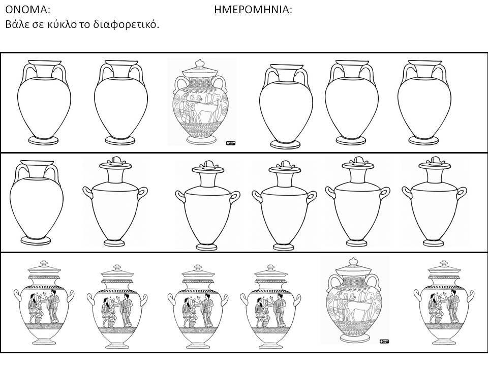 Και τώρα ήρθε η ώρα για παιχνίδι….Εκτύπωσε τις παρακάτω καρτούλες με τα αγγεία, κόψτα στη μέση με ένα ψαλιδάκι, μπέρδεψε τα και προσπάθησε να βρεις και να ταιριάξεις το άλλο μισό!!