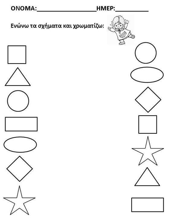 Όταν συνδυάσουμε λοιπόν τις παραπάνω γραμμούλες φτιάχνουμε τα σχήματα. Τον κύκλο, το τετράγωνο, το ορθογώνιο, το τρίγωνο, το ρόμβο.