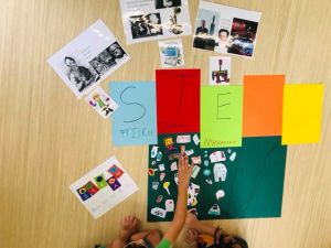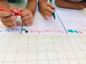 Τα παιδιά με παιγνιώδη τρόπο και με την υποστήριξη των Νηπιαγωγών τους, αρχίζουν να αποτυπώνουν στο χαρτί τα ακούσματα και τις λέξεις που τους είναι γνωστές μέσα από το καθημερινό τους πρόγραμμα (π.χ. το όνομά τους, το όνομα της δασκάλας, του φίλου τους, τις ημέρες, τις ετικέτες στις γωνιές της τάξης και άλλα πολλά). Έτσι ξεκινά ένα μεγάλο ταξίδι που οι παιδαγωγοί ονομάζουν«αναδυόμενη γραφή»